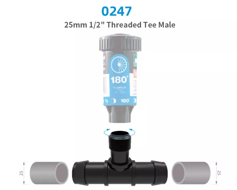 ネジ付きコネクタは、MMIP1/2 インチ雌ネジ付きコネクタまたはスプリンクラーの接続に使用できます。