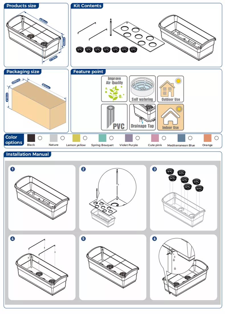 この 30L 自動給水プレーナーは、野菜、緑の植物、花の栽培に適しています。水位を監視する水位計を装備しています。水位が上限値を超えた場合は、ポット内の水を抜く必要があります。ポットの側面に排水バルブがあります。内側に押すと閉まり、外側に引くと水が排出されます。このポットは屋内でも屋外でも使用できます。屋外で使用する場合は、雨などでポット内に水が溜まるのを防ぐため、必ず排水バルブを開いてください。