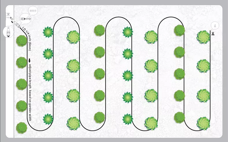 このガーデンドリッピングホースは、芝生、菜園、花壇、その他の植栽エリアに最適で、特に列栽培された植物の精密灌水に適しています。