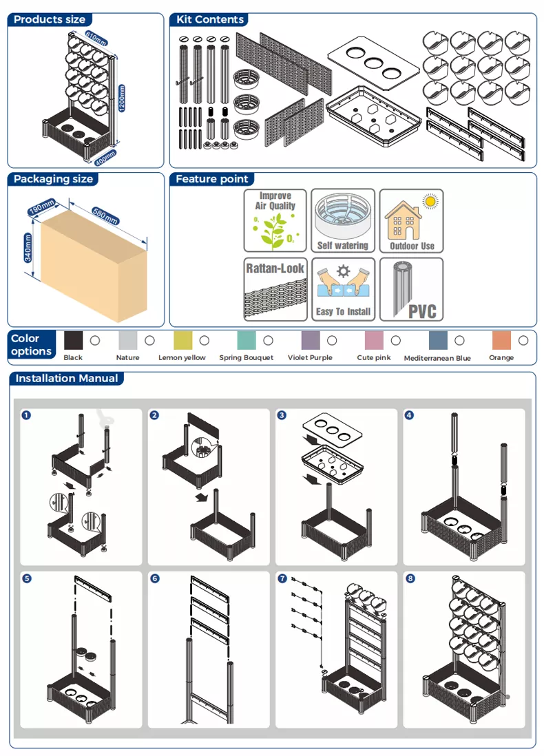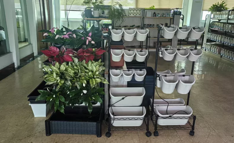 ● 自動散水毛細管トレイを備えた底部ポットは過剰な水を保持し、必要に応じて植物の根が水を吸収し、床を清潔に保ちます。