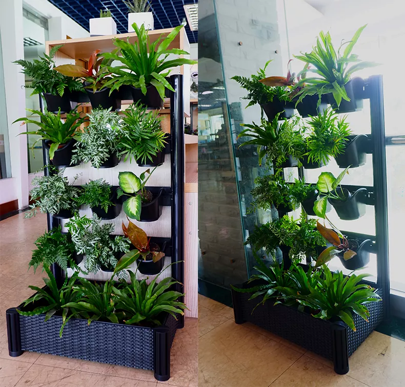 61*40*102cm (L*W*H) 屋内自立型グリーンウォール、12 個 x#1 ポット (13.7 x 16.5 x12.5 cm)、3 個 x 4 インチポット、自動散水毛細管トレイ付き