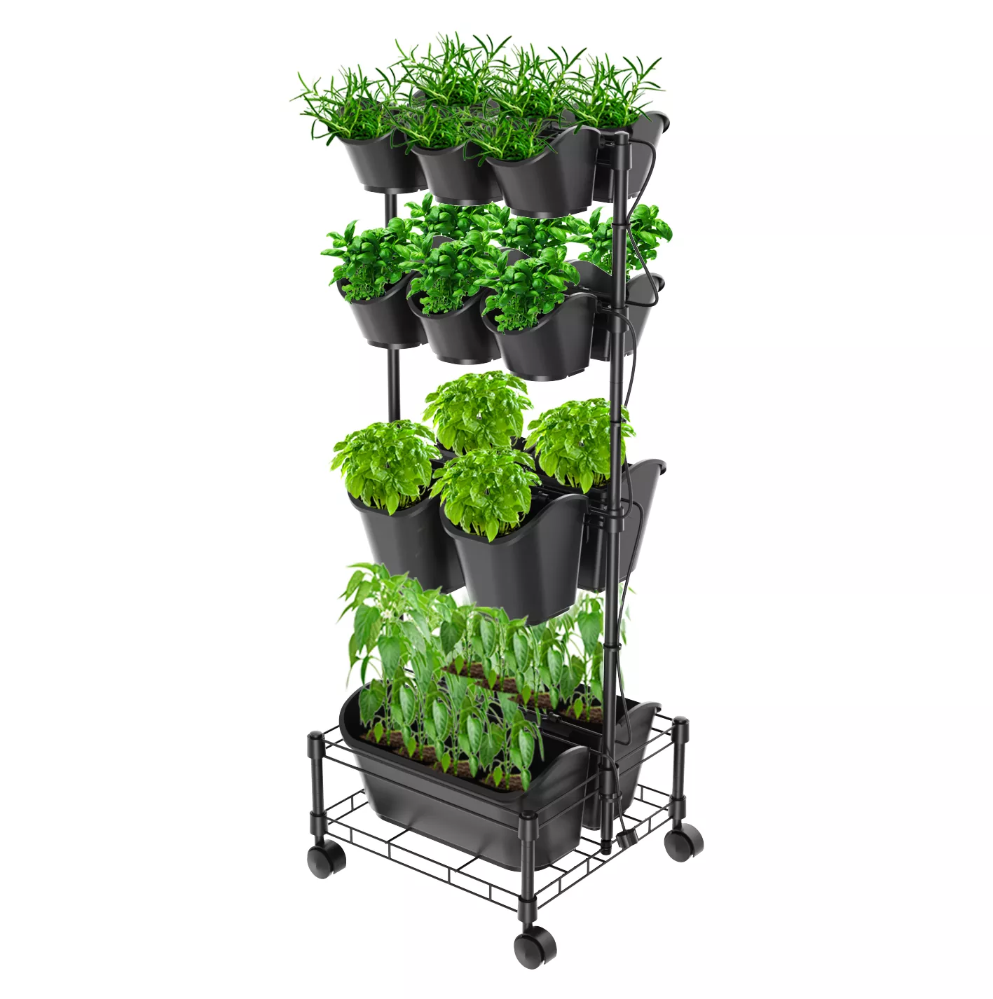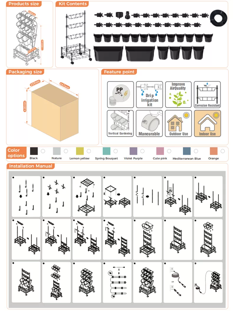 都市生活にぴったりフィットする当社のメタル モバイル グリーン ウォール ダブル フレームは、都市部のガーデニングのあらゆるニーズに対応します。完全な灌漑システムを備えたこの多段プランターは持ち運びが容易なため、省スペースのガーデニングに最適です。お気に入りのハーブ、野菜、花を育てたり、空気清浄植物を追加して家の空気をきれいにして、どこにでも持ち運べます。