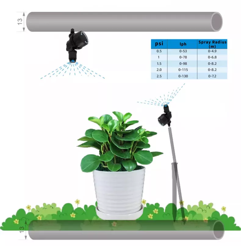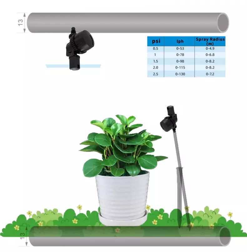 緑の灌漑に特化した製品シリーズとして、マイクロ スプレー ジェットの性能は実際のシナリオでテストされており、スプレーは安定性と耐久性があり、緑の植物に継続的かつ適切な水を供給することができ、商業施設の全体的なイメージを向上させたり、住宅や公共環境の品質を向上させたりするために、見た目が美しく、よく育った緑の空間を作成するのに役立ちます。すべてが安定化の役割を果たすことができます。