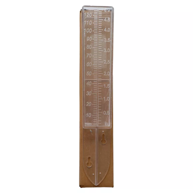 プロフェッショナル雨量計は、一定期間 (通常は 24 時間) の降雨量をミリメートル単位で測定します。市販の雨量計と同様に、内部に測定筒を保護するハウジング(外筒)が付いています。ゲージまたは漏斗の上部はメスシリンダーの上部よりも大きな表面積を持っています。余分な雨水が溜まることでメスシリンダーの読み取りが容易になり、精度が向上します。