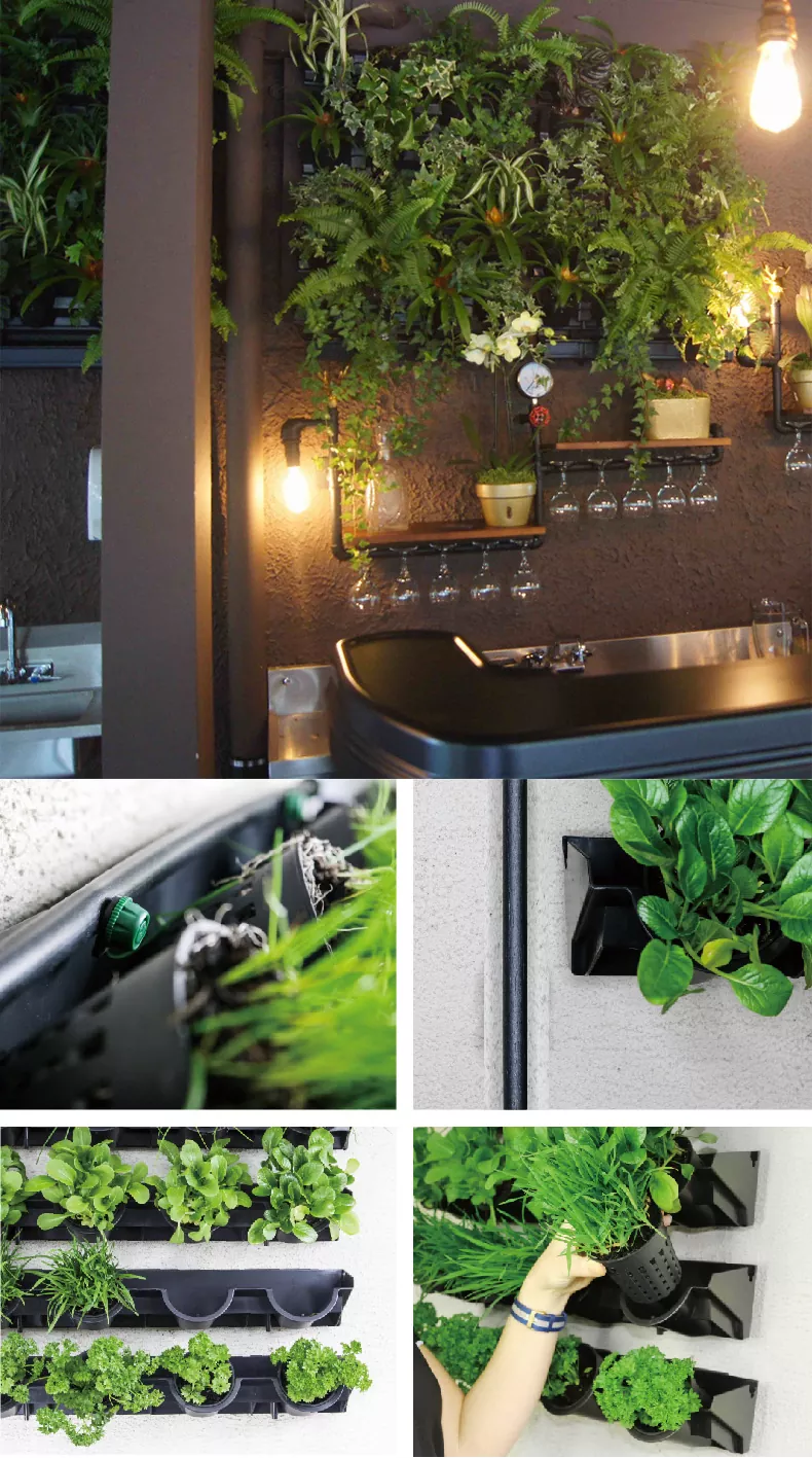 花、ハーブ、多肉植物、野菜などの栽培に最適な植栽ツールの多彩な組み合わせを使用して、どんな表面にも緑の壁を簡単に作成でき、空間の緑と美的魅力の両方を高めます。